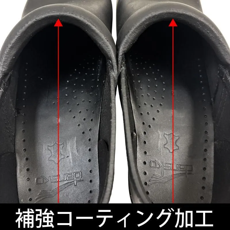 ・こちらの商品は製造後3年ほど経過しておりますので履き口周りのパイピング補強のシリコンコーティング加工をしております。理由として経年でパイピングが剥がれる事例があるので、先んじてコーティングで強化補修をしております。(写真2,3枚目参照)