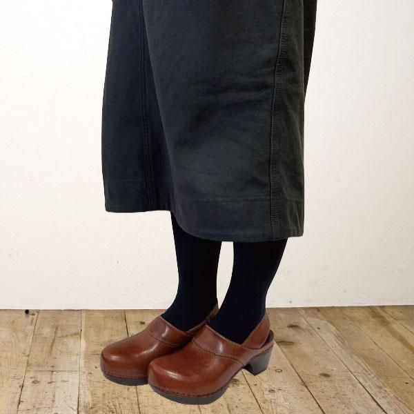 カジュアルでもフォーマルでもどちらでも合わせやすいミドルヒールサボ。