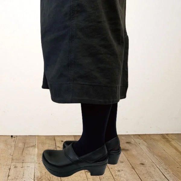 カジュアルでもフォーマルでもどちらでも合わせやすいミドルヒールサボ。