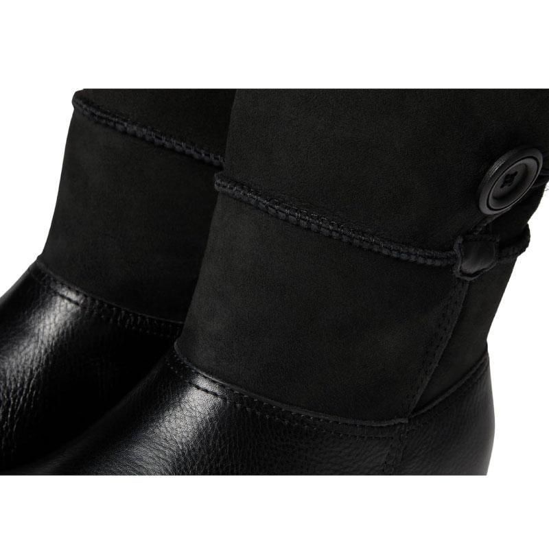 しなやかで丈夫なレザーと、柔らかなヌバックを組み合わせたアッパーに、本物のシアリング(羊毛)をあしらった筒部分が、足元をふんわりと包み込みます。