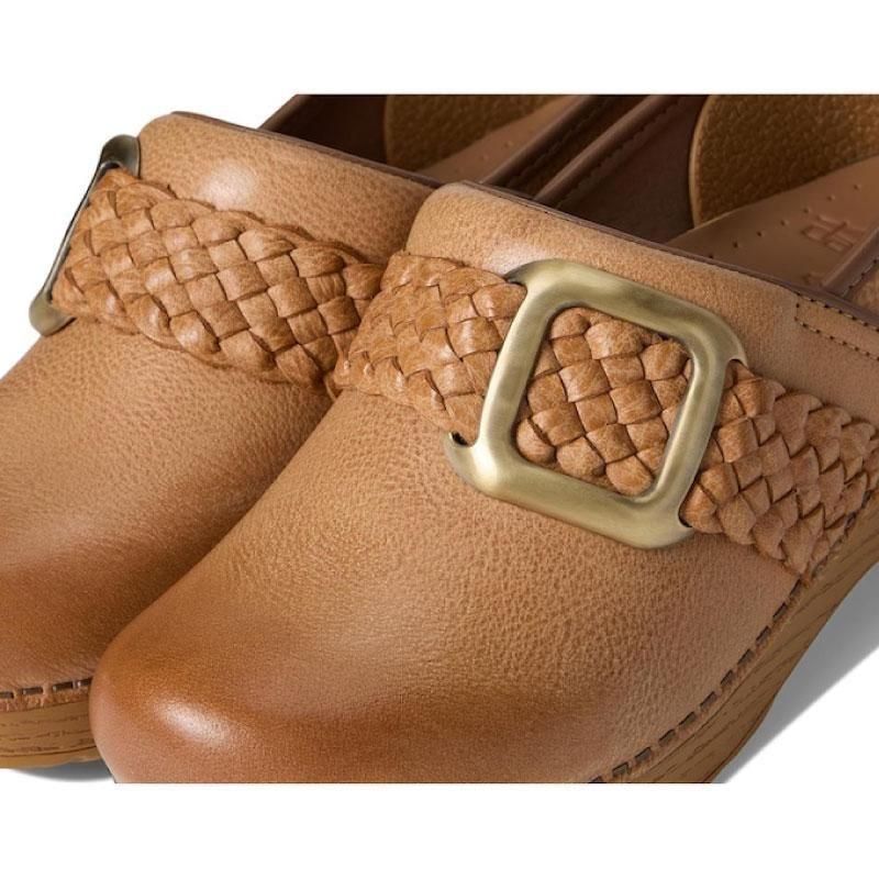 シンプルなクロッグに、上品なブレイディング(編み込み)とアンティーク調の飾りバックルをプラスすることで、大人の女性にも使いやすい落ち着いた華やかさを演出します。